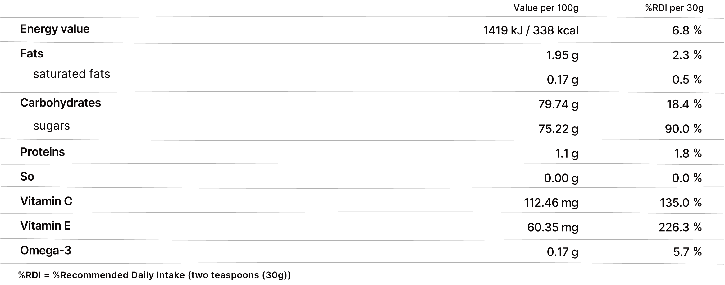 Since our products are completely natural and free from preservatives, it’s important to store them properly. We recommend keeping them in a cool, dark place, away from direct light. Once opened, it’s best to store them in the fridge to keep them fresh longer and preserve their full nutritional value.